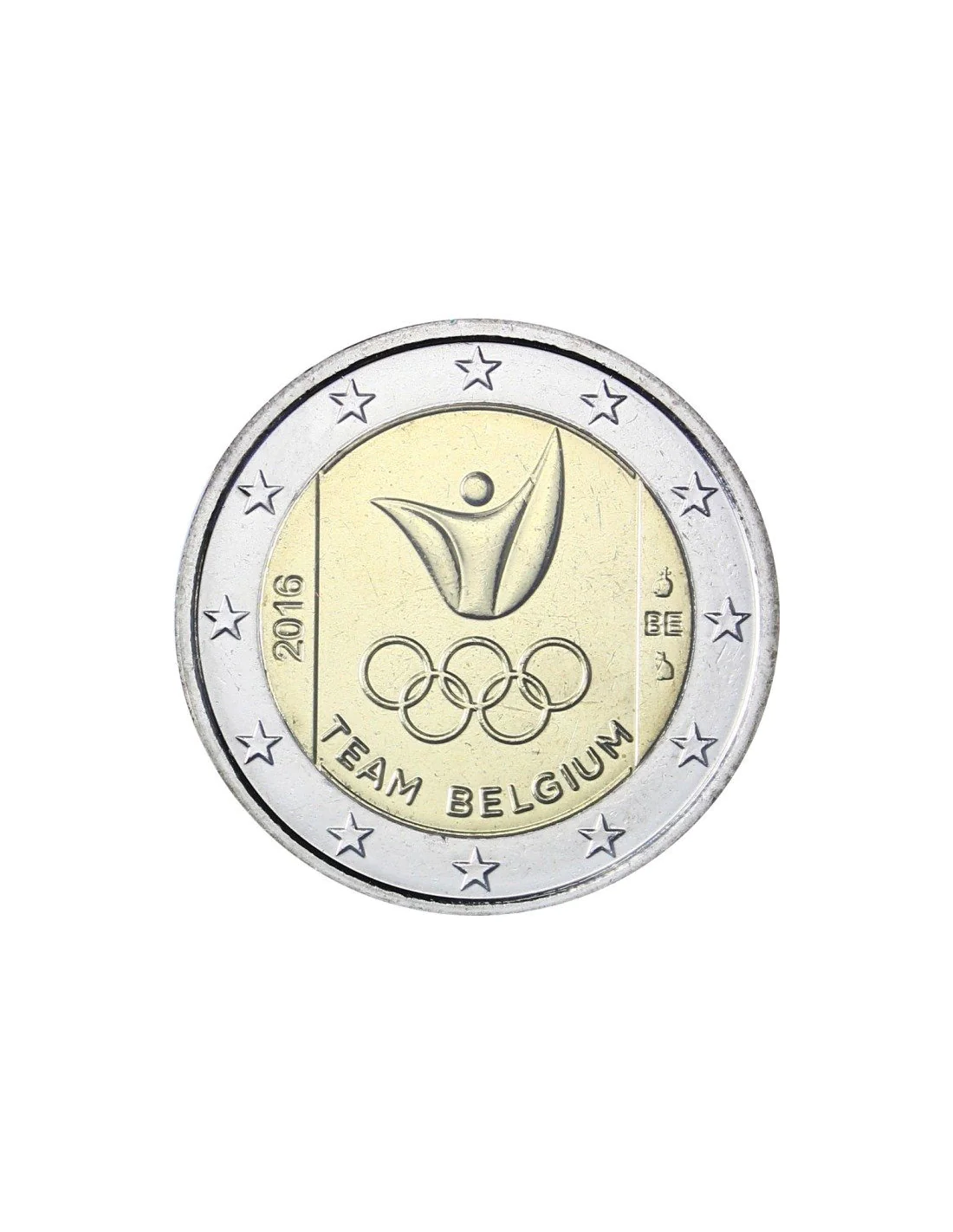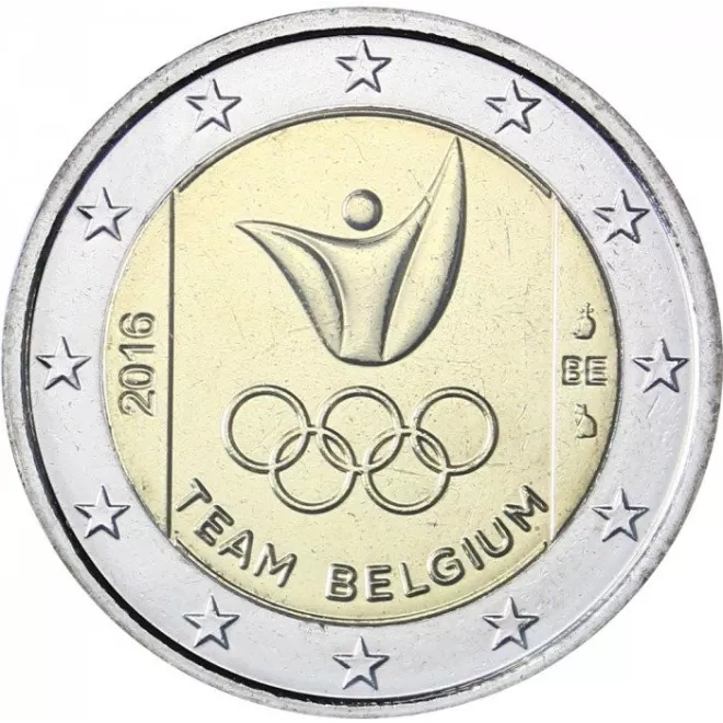 Moneta powstała dla uczczenia belgijskich uczestników Letnich Igrzysk Olimpijskich w Rio de Janeiro w 2016 roku. Na awersie widać symbole olimpijskie i podpis "Team Belgium" - "Drużyna belgijska". Z lewej rok emisji, z prawej oznaczenie Belgii, mincmistrza i mennicy.