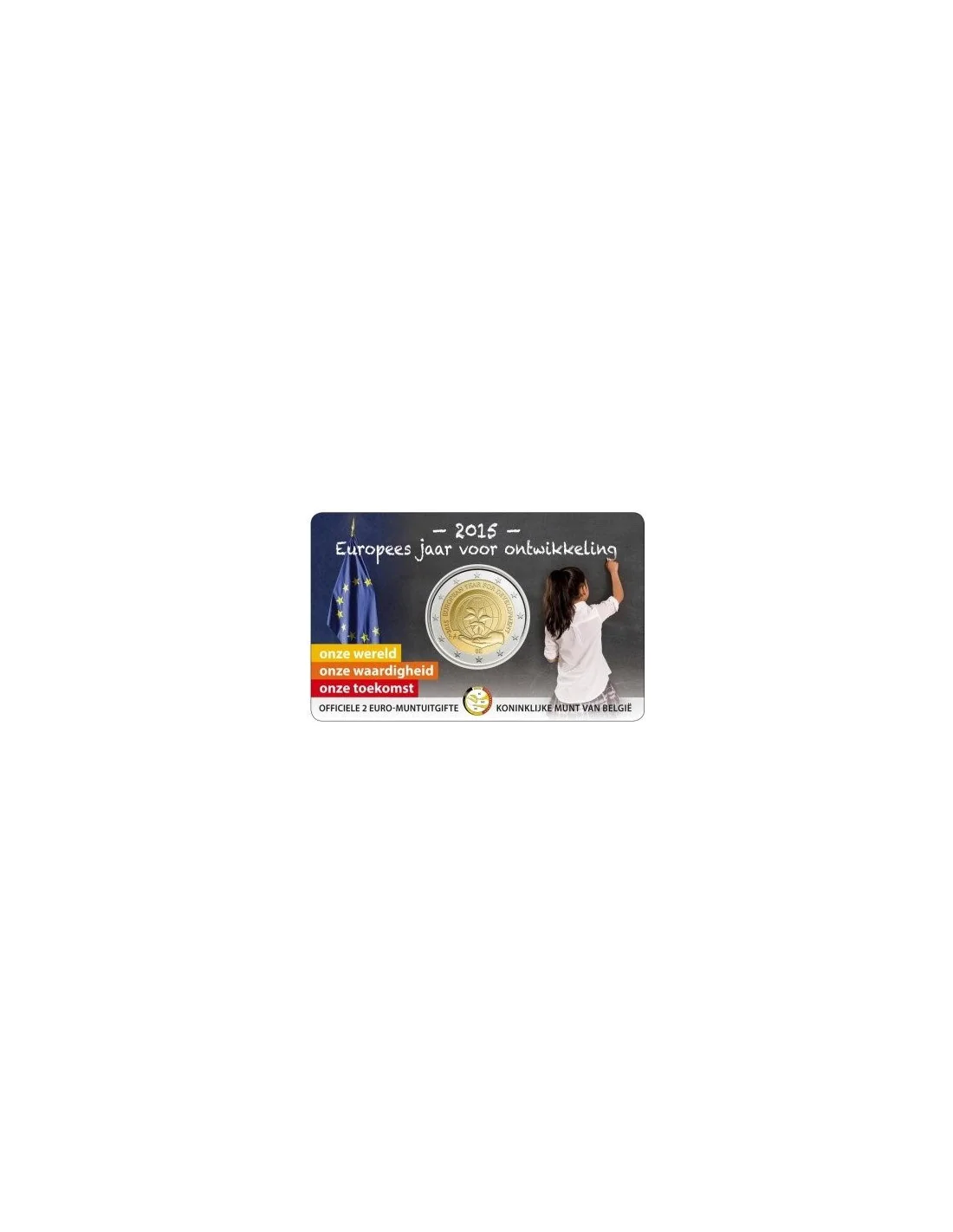 W 2015 roku Belgia wyemitowała monety 2 euro z okazji Europejskiego Roku na Rzecz Rozwoju. Zrobiono to zarówno w wersji niderlandzkiej (flamandzkiej), jak i francuskiej. U góry napis „2015 EUROPEAN YEAR FOR DEVELOPMENT” („2015 EUROPEJSKI ROK NA RZECZ ROZWOJU”), w środku glob, a na nim dłoń z rośliną. Na dole kod Belgii, z lewej rok emisji.