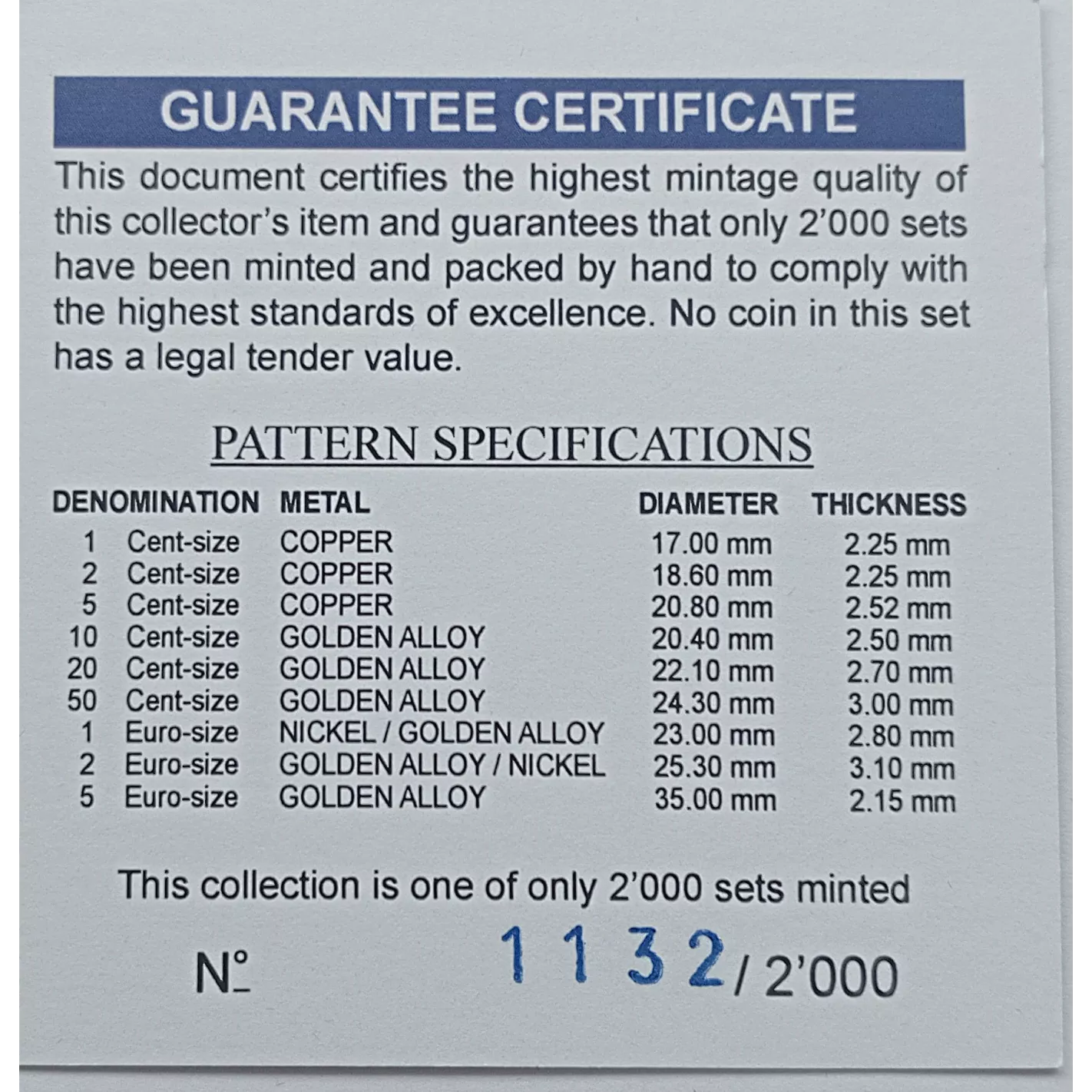 Przygotowane zostały jako prototypy. Co oznacza że są to monety, które nie zostały wydane do użytku obiegowego, lecz w celu testowania nowych wzorów, projektów lub technologii w procesie bicia monet.