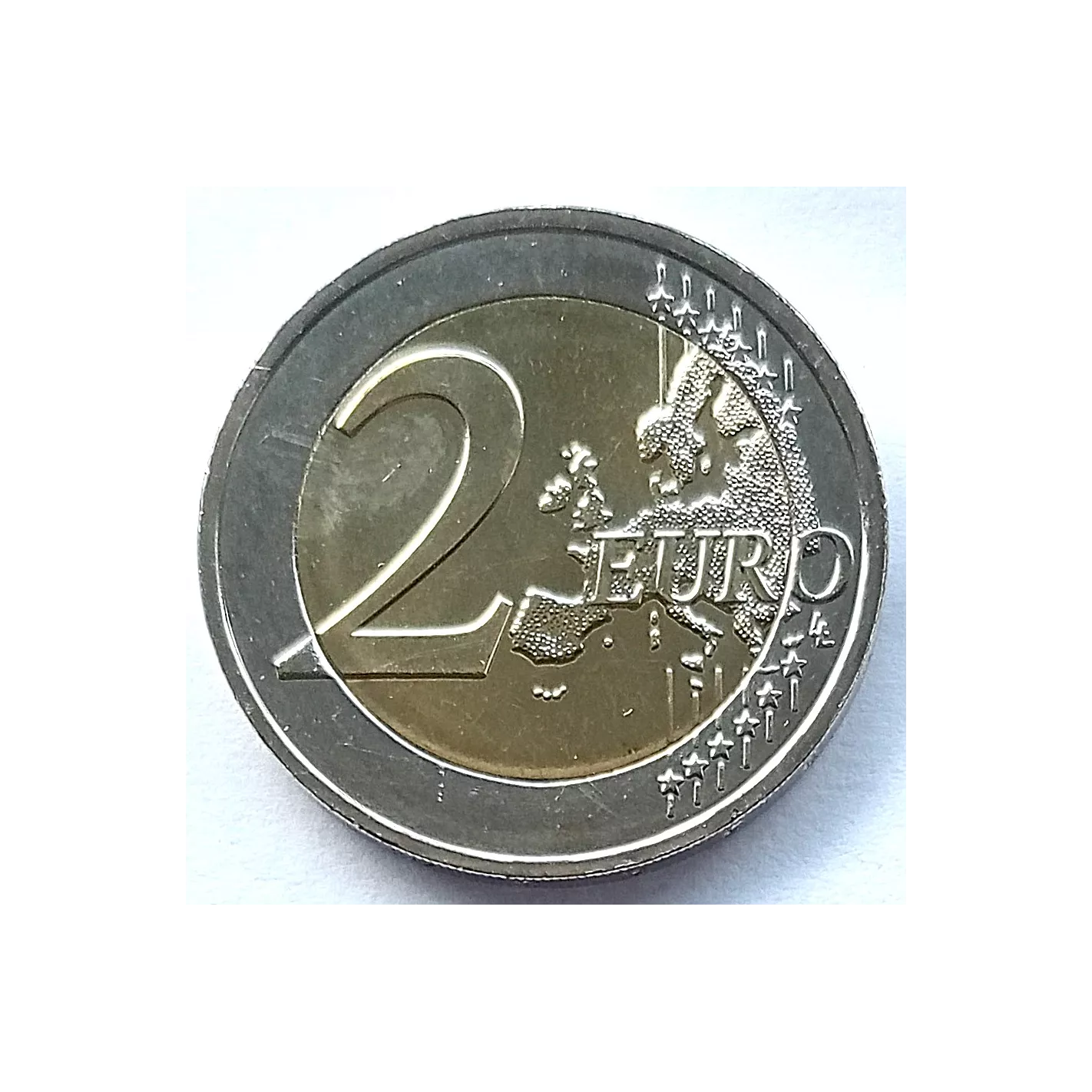 Awers: Strona europejska, wartość „2” na lewo od waluty „EURO”, przed mapą Europy w 6 pionowych liniach, dwanaście 5-ramiennych gwiazd (skierowane do góry), projektant (po prawej) „LL” (Luc Luycx)