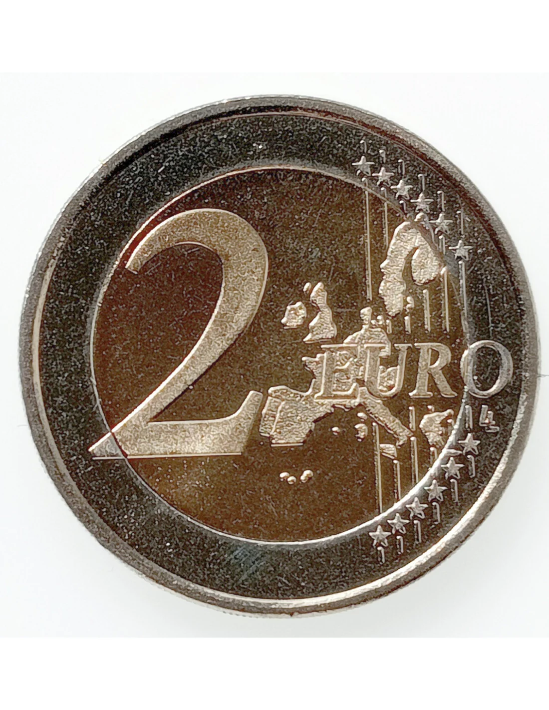Awers (Rdzeń): (wartość nominalna) 2 na lewo od (waluta) EURO przed mapą