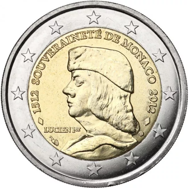 W 1512 roku Monako zostało ustanowione niezależnym państwem przez Lucjana I Grimaldiego. Jego profil uwieczniła Yves Sampo na monecie poświęconej 500 rocznicy tego wydarzenia. Nad profilem koliście widnieje napis „1512 SOUVERAINETÉ DE MONACO 2012” („1512 SUWERENNOŚĆ MONAKO 2012”).