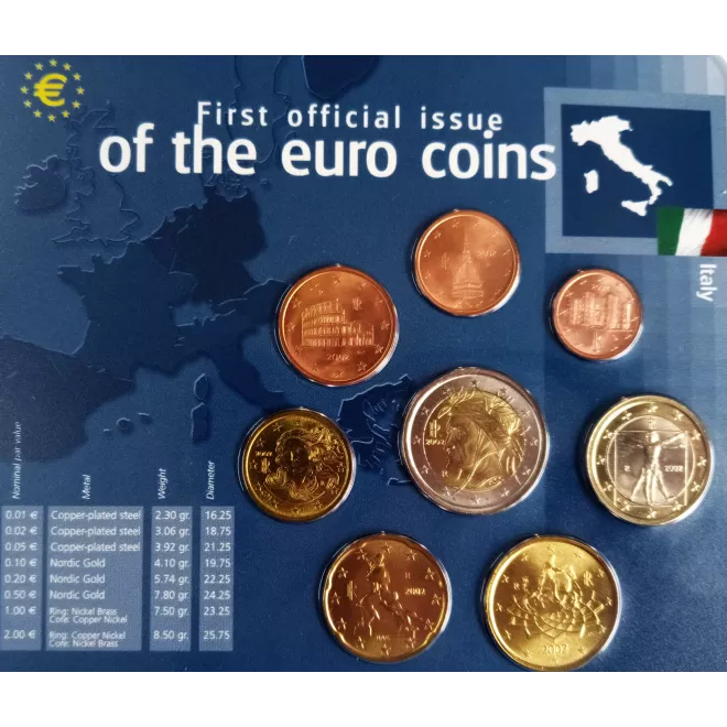 Włochy 2002 zestaw monet 1 cent do 2 euro