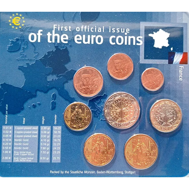Francja zestaw monet 1 cent do 2 euro
