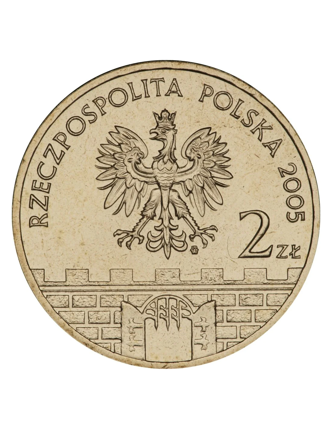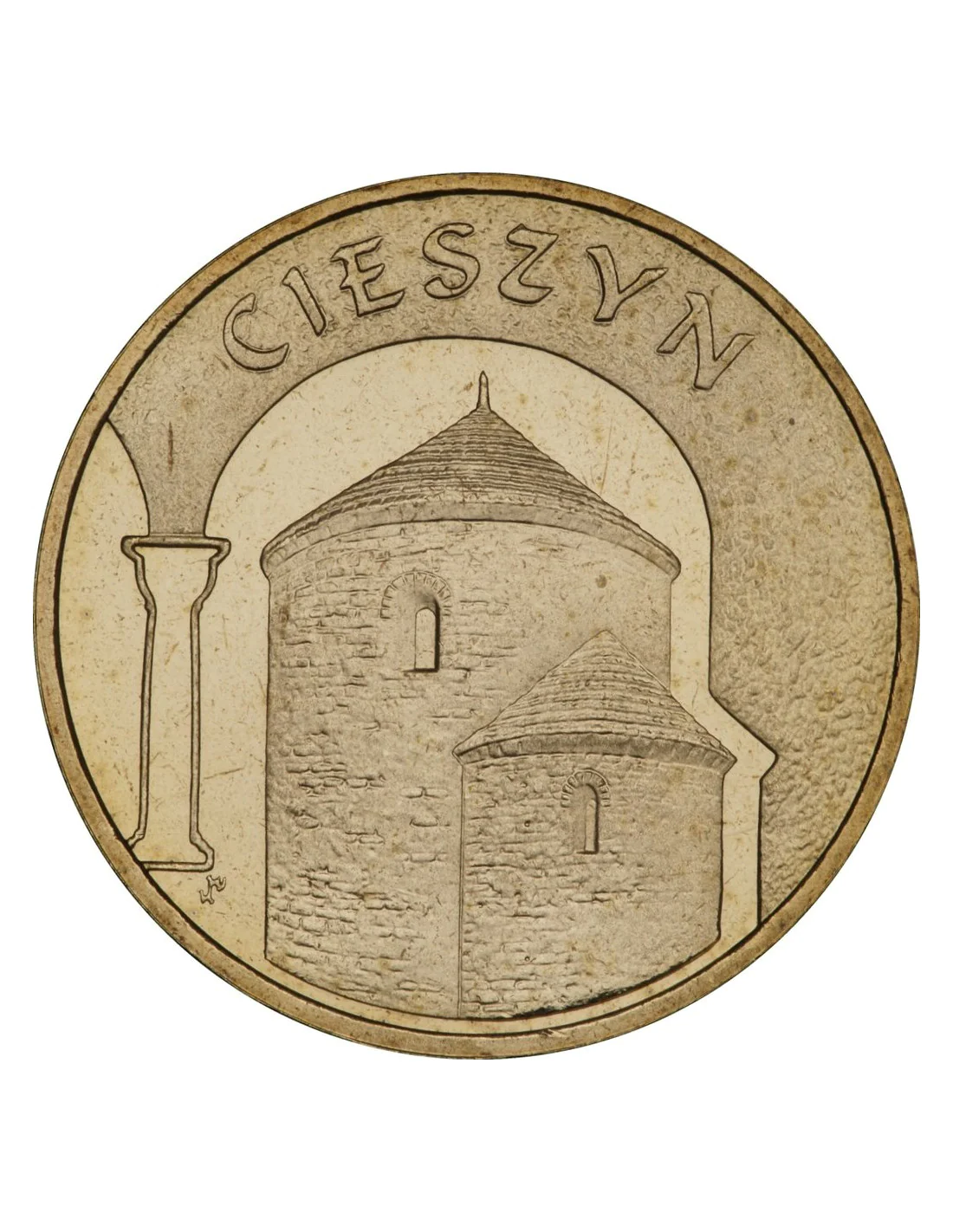 W lewej części rewersu romańska kolumna, w prawej cieszyńska Rotunda św. Mikołaja. Poniżej napis "CIESZYN". Na awersie w jego środkowej części orzeł biały w koronie będący godłem Polski. Pod łapą ma znak menniczy stylizowane MW. Powyżej nazwa emitenta i rok emisji RZECZPOSPOLITA POLSKA 2005. U dołu mury miejskie z podniesioną kratą w otwartej bramie.