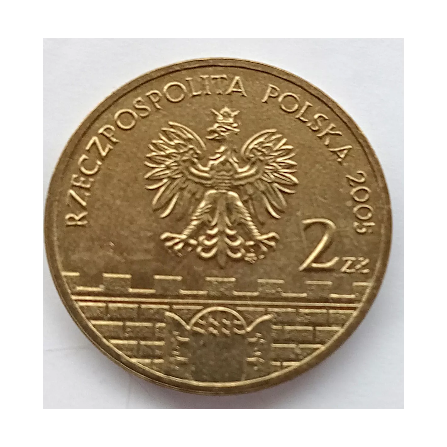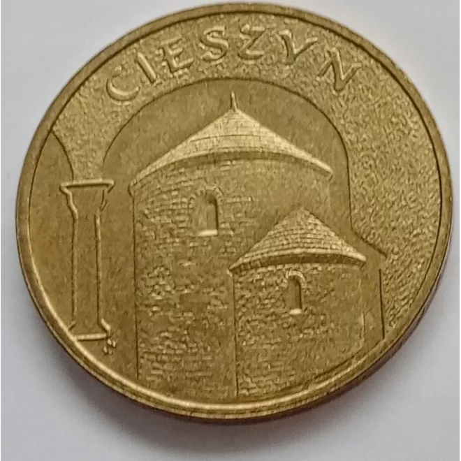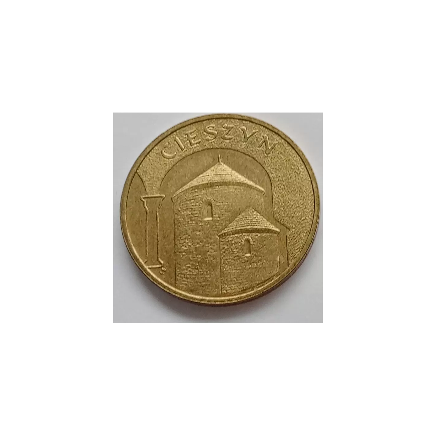 W lewej części rewersu romańska kolumna, w prawej cieszyńska Rotunda św. Mikołaja. Poniżej napis "CIESZYN". Na awersie w jego środkowej części orzeł biały w koronie będący godłem Polski. Pod łapą ma znak menniczy stylizowane MW. Powyżej nazwa emitenta i rok emisji RZECZPOSPOLITA POLSKA 2005. U dołu mury miejskie z podniesioną kratą w otwartej bramie.