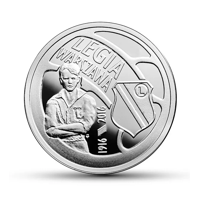 Na rewersie sylwetka Stanisława Mielecha, jednego z założycieli Legii Warszawa. Nad nim nazwa klubu, a z prawej herb. Obok postaci pionowo lata 1916-2016. Awers zaprojektowany w formie przypominającej piłkę do gry. W jej środku godło, znak menniczy MW. Naokoło nazwa emitenta RZECZPOSPOLITA POLSKA i rok emisji 2016. Na dole nominał "5 ZŁ".