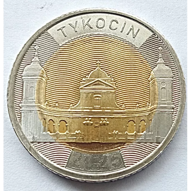 Rewers: Przedstawia wizerunek zachodniej strony kościoła Świętej Trójcy w Tykocinie. Motyw u góry TYKOCIN. U dołu osobne pole z ukrytymi wizerunkami NBP (Narodowy Bank Polski) lub rokiem 2025, w zależności od kąta patrzenia.