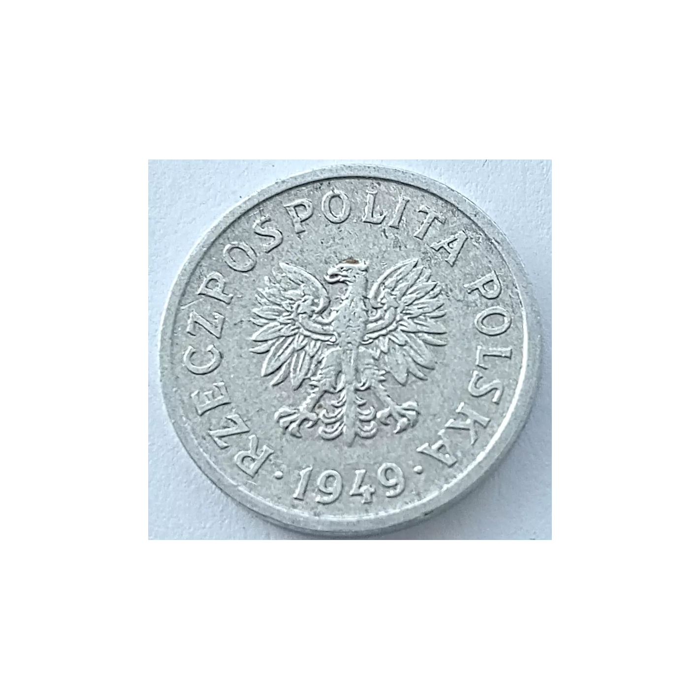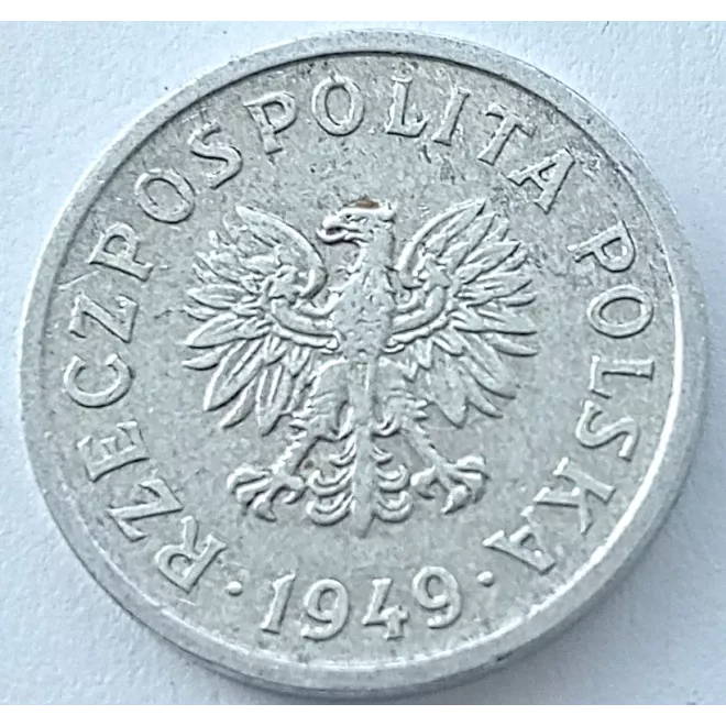 Awers: Herb Polski z orłem (bez korony) z rozpostartymi skrzydłami; napis: RZECZPOSPOLITA POLSKA  u dołu: 1949 (rok).