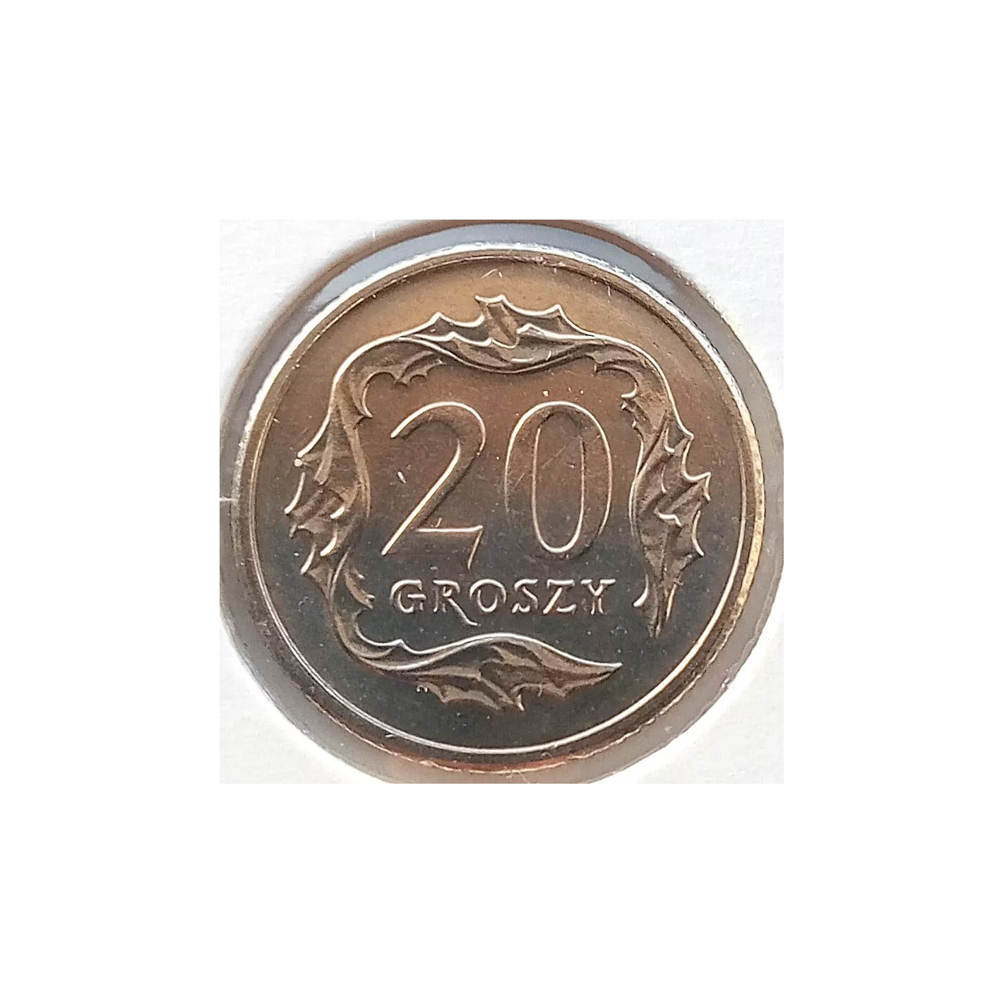 Awers: (wartość nominalna) 20 GROSZY wewnątrz kwadratowej girlandy (listkowej)