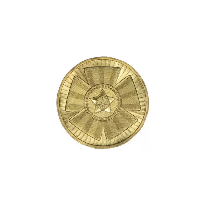 Awers: na środku krążka - oznaczenie nominału monety „10 РУБЛЕЙ” (10 rubli). Wewnątrz cyfry „0” - ukryte zdjęcia cyfry „10” oraz napisu „РУБ” (RUB) widoczne na zmianę przy zmianie kąta widzenia. Wzdłuż krawędzi koliste napisy, u góry: „БАНК РОССИИ” Bank Rosji), u dołu data: „2010”, z lewej stylizowany wizerunek gałązki wawrzynu, z prawej strony dębu...