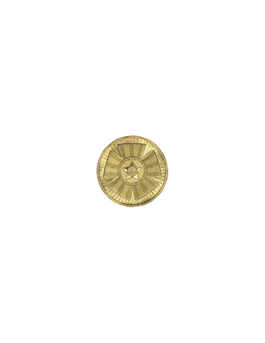 Rewers: na tle promienistych pasów - Godło 65. Rocznicy Zwycięstwa: krążek z kolistymi napisami w otoku:„ПОБЕДА В ВЕЛИКОЙ ОТЕЧЕСТВЕННОЙ ВОЙНЕ” (Zwycięstwo w Wielkiej Wojnie Ojczyźnianej) oraz „65 ЛЕТ" (65 Rok wydania), podzielony dwiema gwiazdkami, pośrodku krążka - pięcioramienna gwiazda Orderu Chwały..