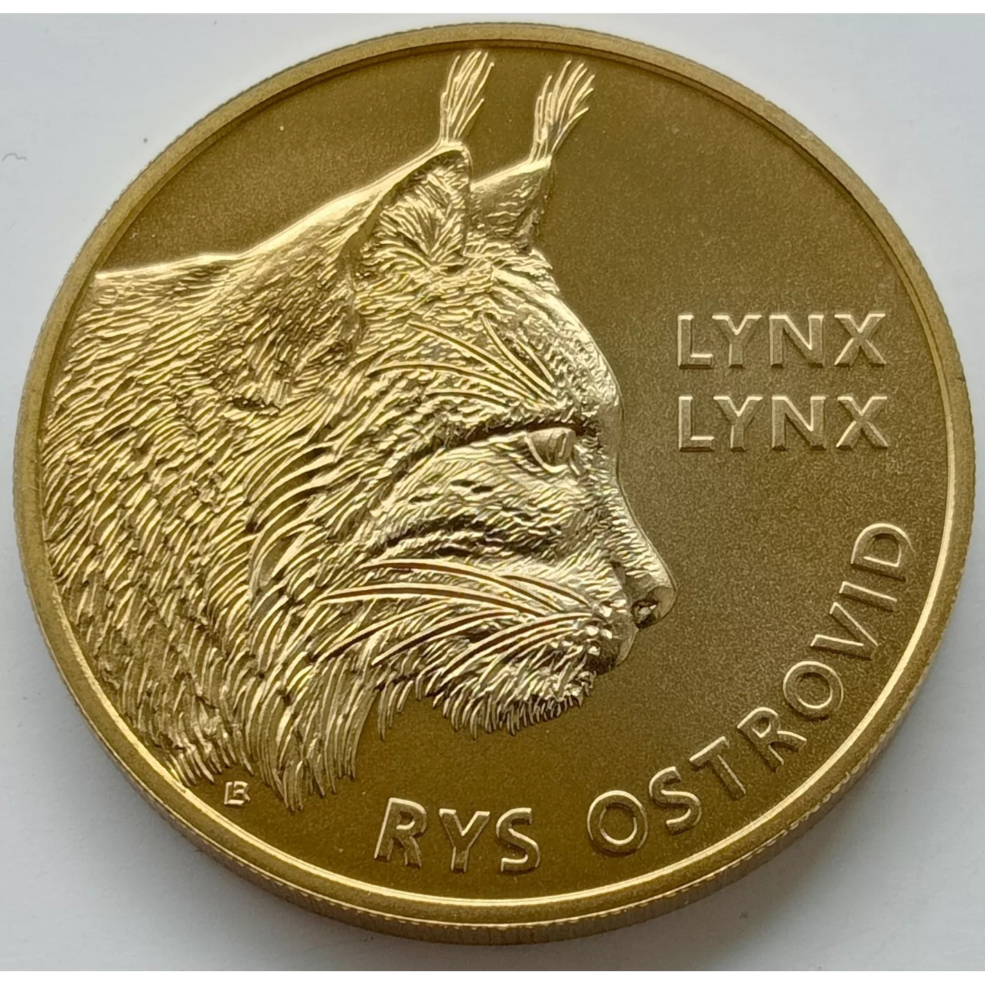Rewers: Lewą i środkową część motywu wypełnia głowa rysia z profilu. Po prawej stronie zdjęcia, w dwóch wierszach, znajduje się nazwa naukowa rysia LYNX / LYNX, projektant w lewym dolnym rogu LR (Roman Lugár). W prawym dolnym rogu wpisana jest nazwa rysia w języku słowackim RYS OSTROVID.