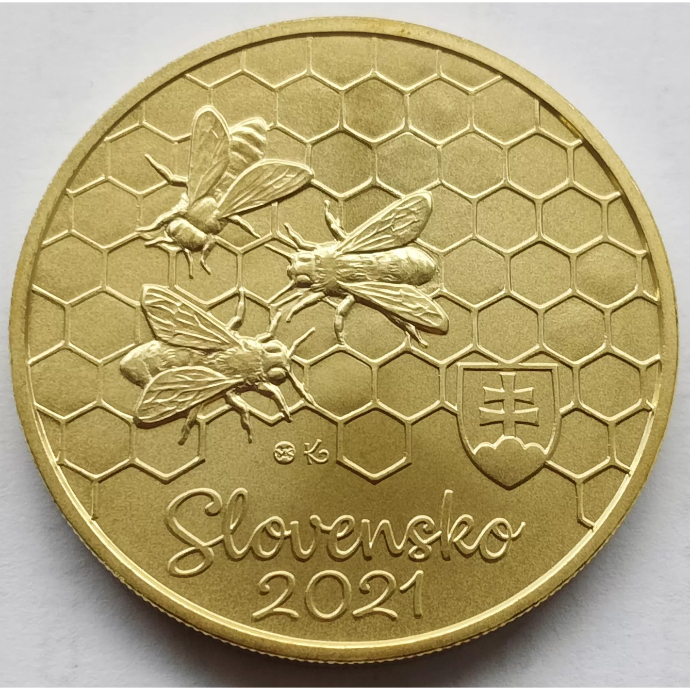 Awers: Plaster miodu z trzema pszczołami, mała tarcza Słowacji, znak mennicy „(MK)” i projektant „K” Karol Ličko, kraj i data; „Slovensko / 2021”